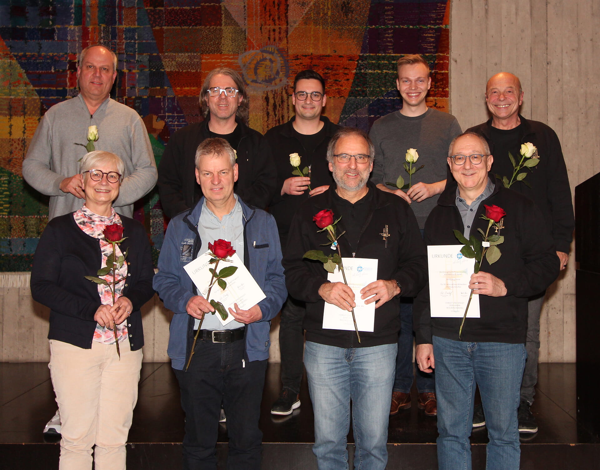 Es standen noch einige Ehrungen von Mitgliedern an. Geehrt wurden Maximilian Wagner für 25 Jahre; Roland Dehn, Juliane Paredes-Benavides und Susanne Zimmer für 40 Jahre; Albrecht Frick, Mechthild Moser, Wolfgang Munz und Christoph Schwarzkopf für 50 Jahre treue Zugehörigkeit. Sowie Wolfgang Herre und Martin Sorg für 50 Jahre aktives Mitwirken im Posaunenchor.